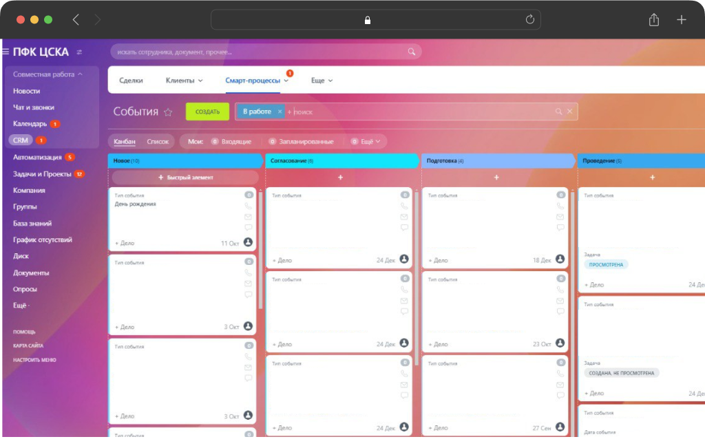 Для оцифровки и автоматизации процесса согласования и добавления событий в разные типы календарей в Битрикс24 потребовалось формирование двух СП: